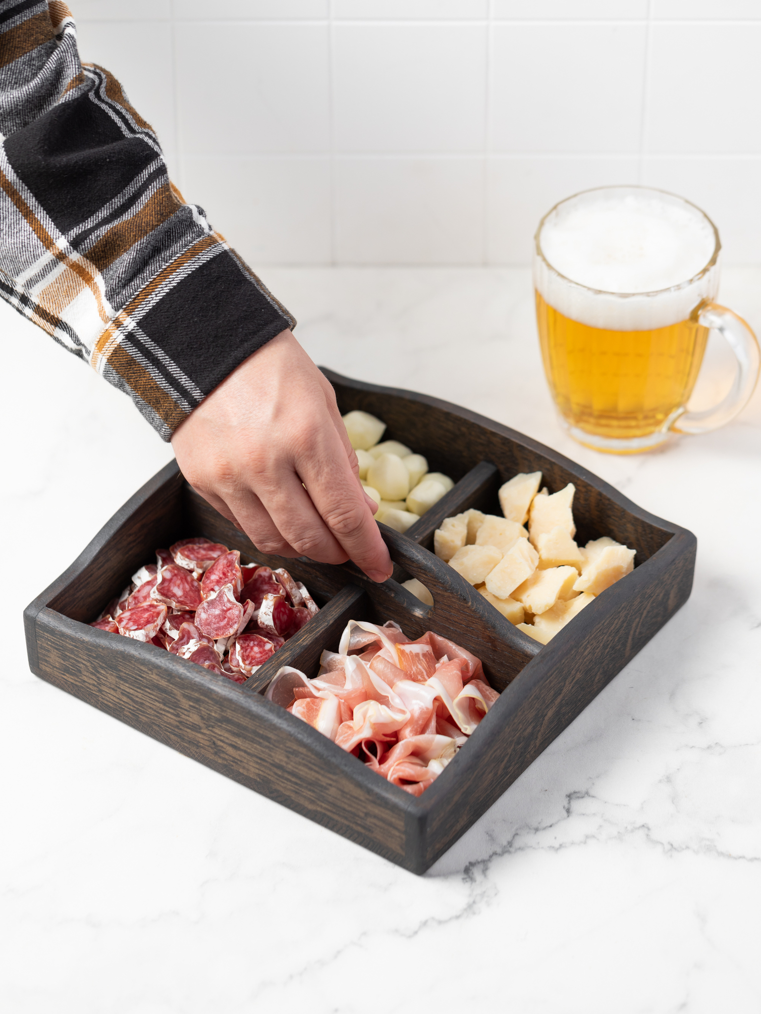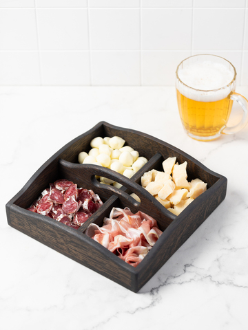Oak dip board for serving dried fruit, nuts and snacks. Colour: walnut. Oriental atmosphere and tea ceremonies every morning. Coffee breaks in the midst of a busy day. TV series, cablecast soccer or a romantic dinner. Twice as tasty with your favorite beverages.
