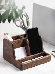 Подставка - органайзер для канцелярии из дуба в шоколадном цвете